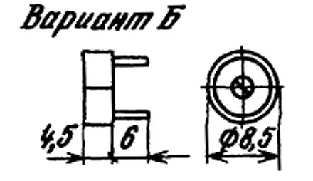 Выпускаются в конструктивном варианте для печатных схем с креплением за корпус (вариант «а») и с креплением пайкой за выводы (варианты «б», «в»).