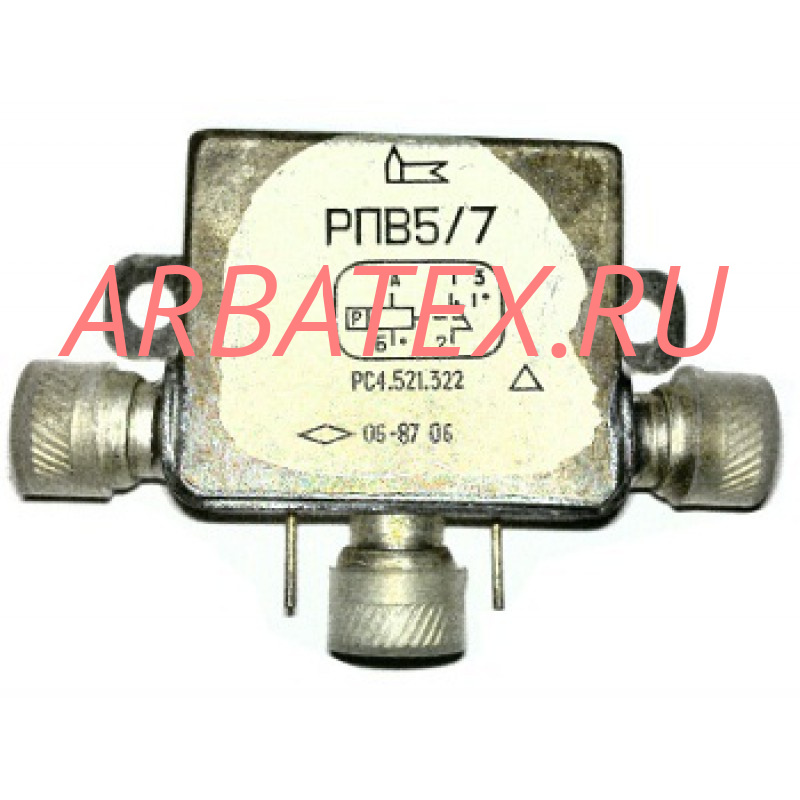 Реле РПВ-5/7 РС4.521.322 негерметичное, высокочастотное, поляризованное, двухпозиционное, с одним переключающим контактом, предназначено для коммутации электрических цепей постоянного и переменного тока частотой до 500 МГц при мощности до 24 Вт и частотой до 1000 МГц при мощности до 2 Вт.
