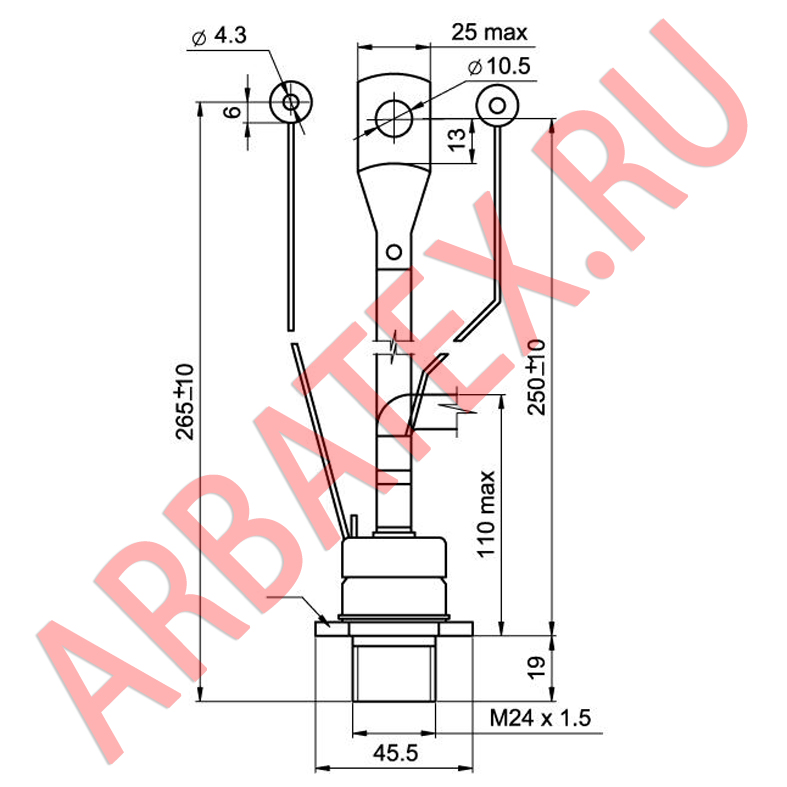ТБ371-250-9 - быстродействующий тиристор штыревого исполнения.